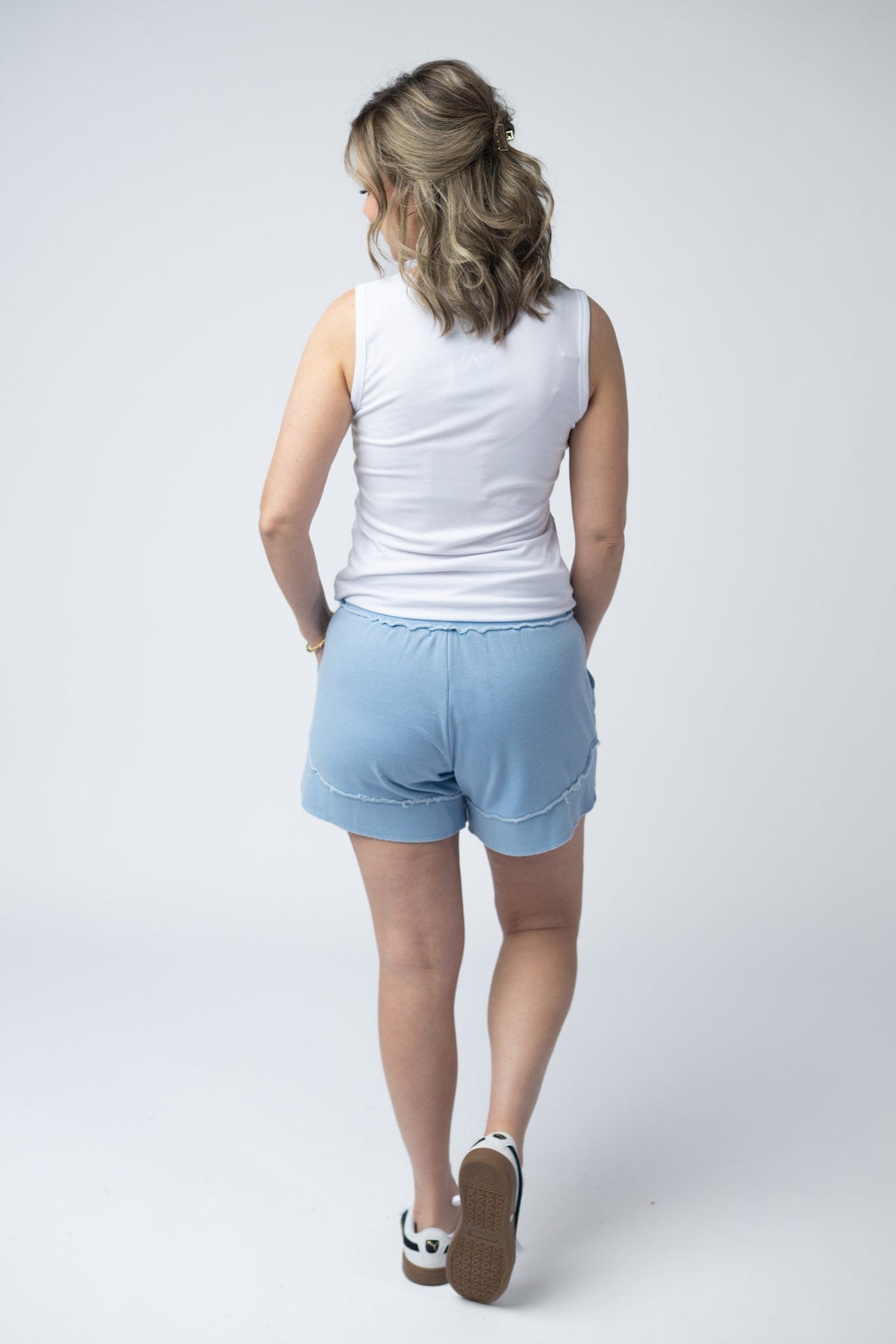 Upgrade your casual wear with the Stevie Shorts. These shorts are made from super soft French terry fabric and include a functioning drawstring, pockets, and a double elastic top band for extra hold. The classy side scoop detail adds a stylish touch.