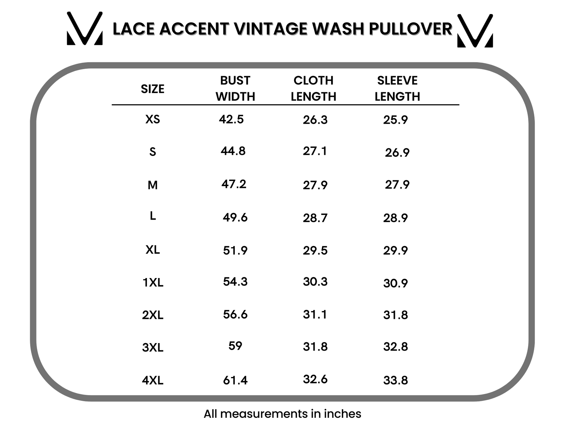 IN STOCK Lace Accent Vintage Wash Pullover - Hot Pink