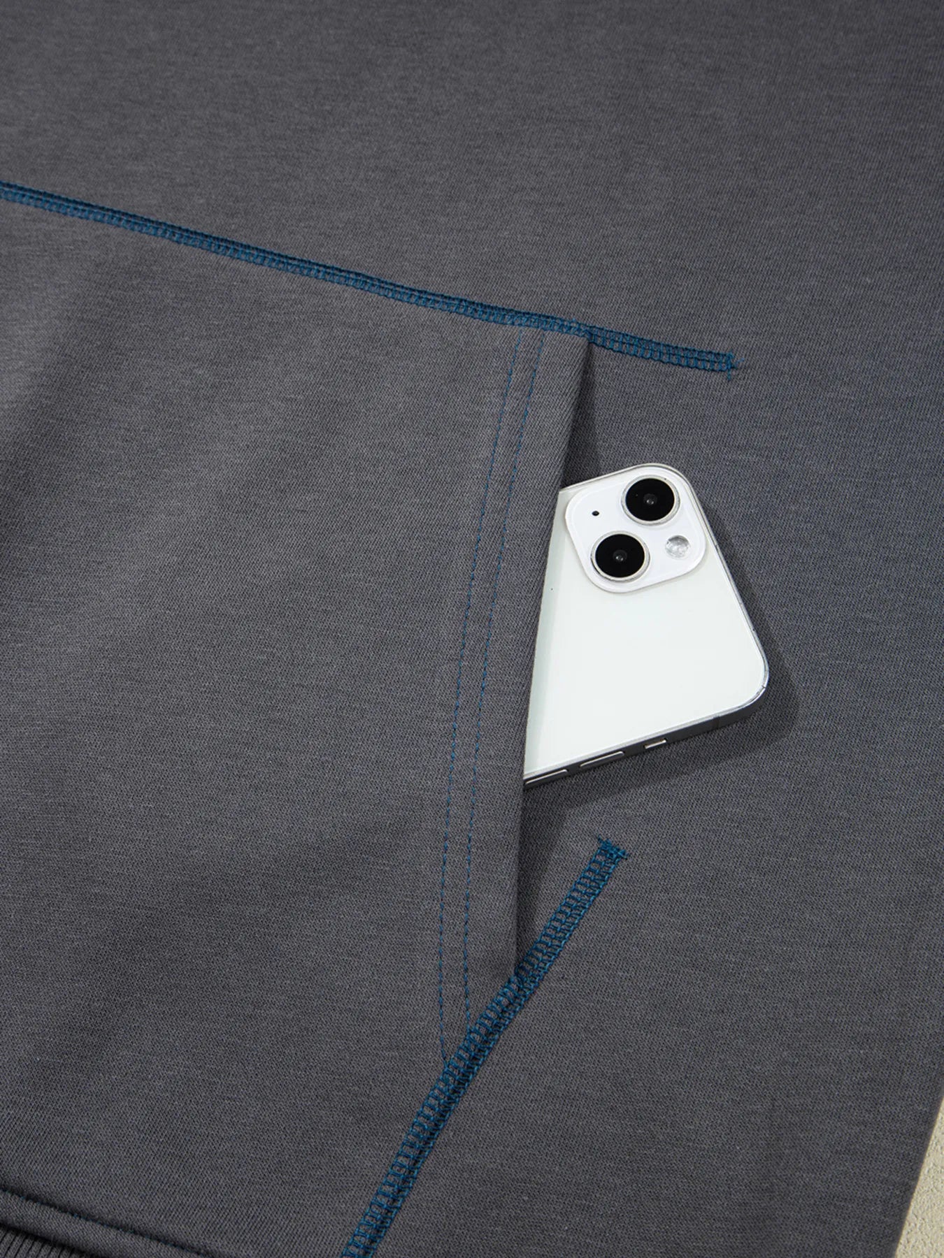 Star Patchwork Contrast Stitching Mineral Wash Kangaroo Pocket Hoodie